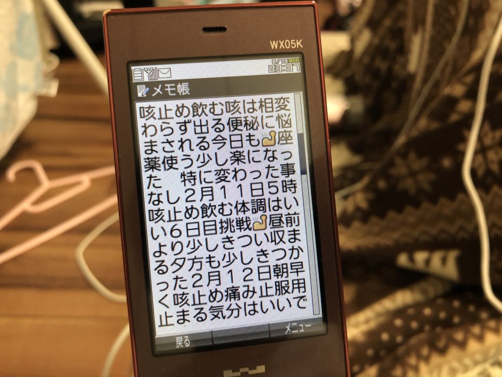 2月9日5時頃席が出て咳止めを服用4日の挑戦 便秘は辛いその他変化なし