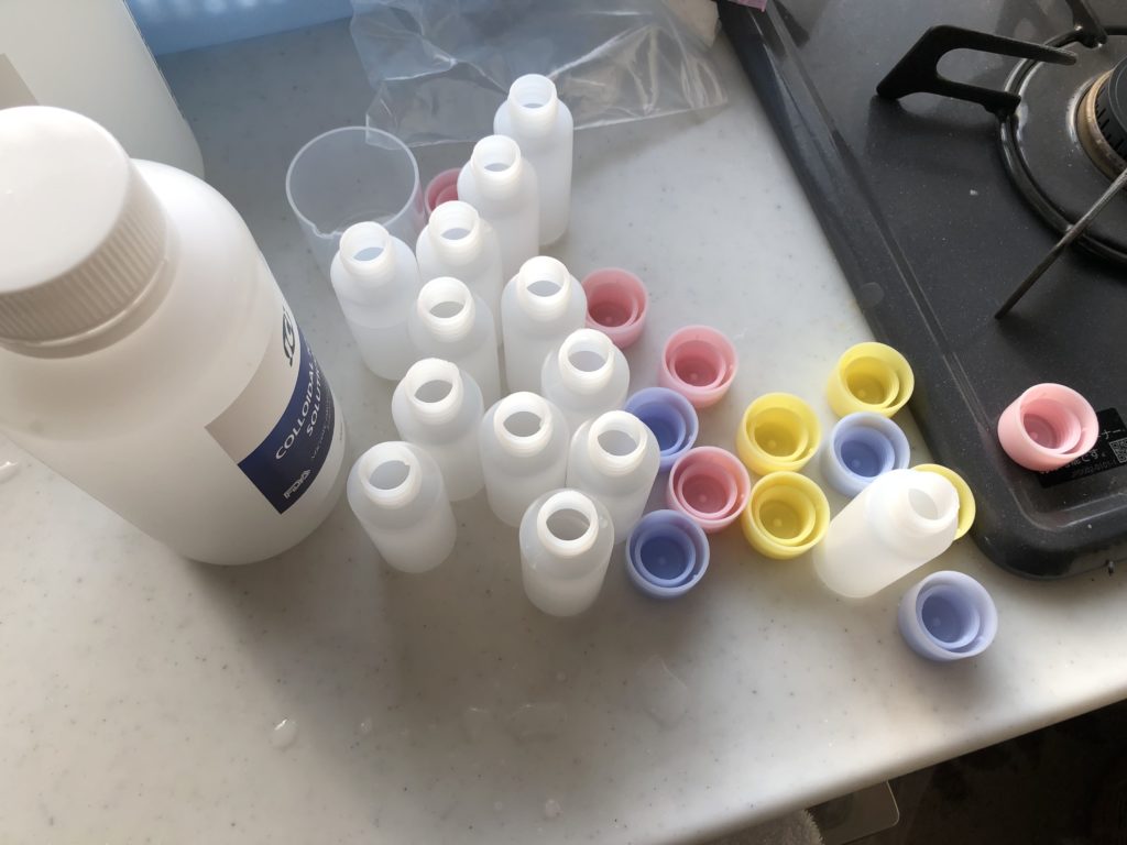 1回1回測って飲むのは大変なので、姉のアイデアで、100円均一で1回分(20ml)がちょうど入るような容器を数十本購入